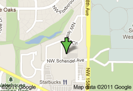 From Portland, take Hwy 26 West and exit at the Cornell/Bethany exit. Turn left on Cornell, crossing back over the highway. Turn left at first stop light onto 158th St. Turn right at the light at Schendel Ave. (before Fred Meyer's). The office is in a two-story red brick building on the right in Suite 230.
